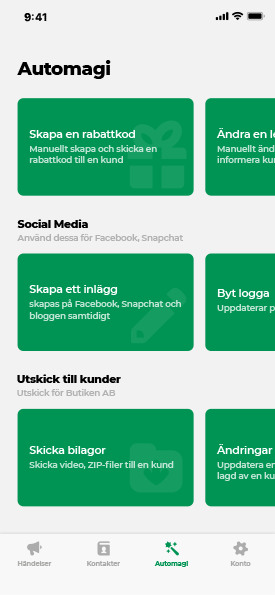 Med appen kan du skapa enklare utskick. För mer skräddarsydda utskick, kontakta oss!